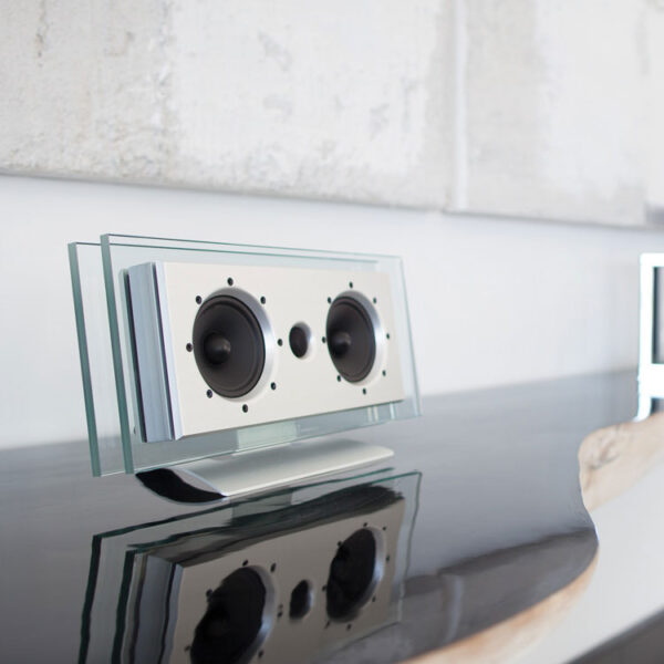 Con los altavoces, el movimiento del driver es el que produce el sonido, pero también provoca vibraciones en el gabinete que pueden introducir distorsión, coloreando el audio de maneras no deseadas. El vidrio, además de ser visualmente impactante, es extremadamente denso, por lo que la vibración del gabinete no influye en el sonido. El resultado es una base para un altavoz muy neutro y natural.